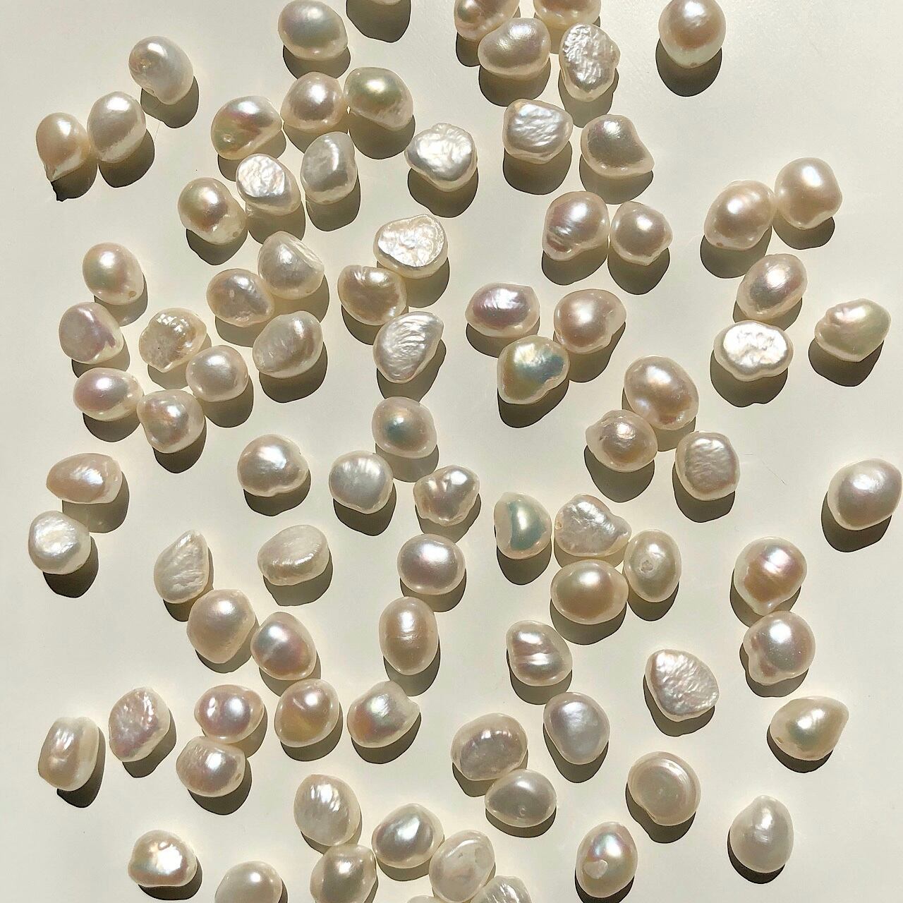 ■淡水パールは天然由来の素材です。偶然的な真珠層の厚みにより色むらが発生します。また真珠層にヒビが入っていたり、穴があいているように見えたり、欠けている場合もありますが、性質上のものですので不良品ではありません。
